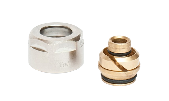 Uniwersalna złączka przeznaczona do łączenia rury Pex , Pert, AluPex 16×2,0 z rozdzielaczem ogrzewania podłogowego , modułem grzejnikowym/ podłączeniowym (grzejniki dolne) które są wyposażone w gwinty zewnętrzne 3/4 ze z gniazdem euroconus.