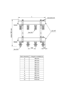 Rozdzielacz 5/4″ z profilu C3 , zastosowanie do biegów grzewczych oraz do dystrybucji wody użytkowej ciepłej i zimnej.