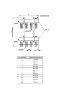 Rozdzielacz 5/4″ z profilu C3 , zastosowanie do biegów grzewczych oraz do dystrybucji wody użytkowej ciepłej i zimnej.